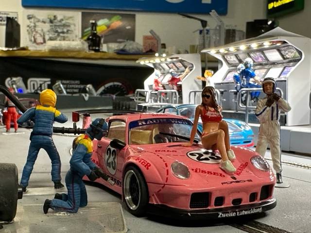 Slot Racing System présent les 2 voitures pour les 24 WRS en 21 22 septembre 2024 sur le circuit miniatures de 36 mètre Il reste 10 voitures a suivre les l’équipes Et la Safety Car pour ces 24 h