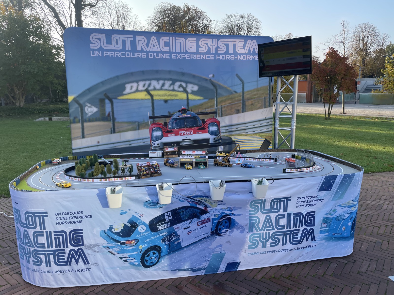 SLOT RACING SYSTEM a installé un circuit de voitures miniatures de 4 mètres de long et 2 mètres de large dans parc du stade Toland Garros à Paris . Avec 45 personnes se sont affrontées pour réaliser le meilleur temps. Une finale a opposé les 6 meilleurs pour sélectionner le vainqueur du challenge.